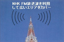 放送局のFMアンテナから送信。3方式の中では、最も広い範囲に送信出来ます。 田舎の一般道、国道や県道などの主要幹線道路、高速道路などを問わず、どこ を走っていても電波が届く限り受信が可能です。 |