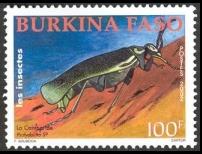 このブルキナファソから1992年に昆虫を描いた切手4種が発行されました。