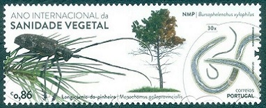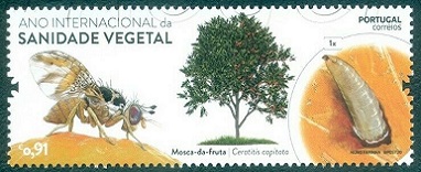 このポルトガルから2020年に植物と昆虫の成虫と幼虫を描いた国際植物防疫年記念切手4種が発行されました。