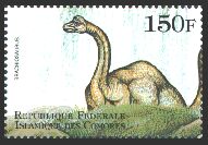 このコモロ・イスラム連邦共和国から1999年に、恐竜と原トンボを描いた切手12種セット(小型シート)が発行されました。