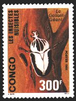 One kind of insect stamp was issued from People's Republic of Congo in 1985.