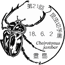日本郵趣協会の昆虫切手部会では昆虫切手展の開催の都度、特別の期限のみ使用できる昆虫を描いた小型印を作成し使用しました。1984年から定例的に昆虫切手展を開催し、1996年の第11回からは虫に因んで毎年6月4日に近い土日を含む3日間開催する様になりました。