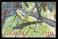 ガンビアの昆虫切手ガンビアはアフリカ大陸の西端にある、国土1万km2、人口100万人の国で、大西洋に面する一部を除きセネガルに囲まれています。1821年にイギリスの植民地となり、その後100年以上に亘って奴隷貿易の基地としてイギリスの支配下に置かれました。1965年に独立を達成し、1970年に共和制に移行しました。