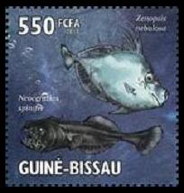 ギニアビサウ共和国から2010年に深海魚切手5種から構成される小型シート1種と深海魚切手1種から構成される小型シート1種が発行されました。