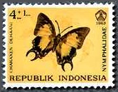 このインドネシアから1963年に第六回社会の日に寄付金付き蝶切手4種が発行されました。