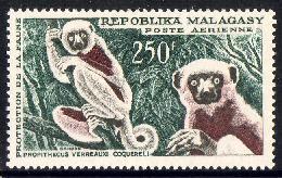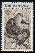 このアフリカの南東に浮かぶ大きな島国マダガスカルから1961年に猿を描いた美しいザンメル凹版の通常切手3種と航空切手3種が発行されました。