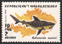 その後、1993年に8種のサメを描いた魚類切手が発行されました。7種のみ収集済で、最高額の2000FMGの1種は未収集です。