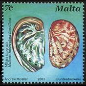 このマルタ共和国から2003年に、軟体動物を描いた切手16種の連刷切手(4×4)が発行されました。