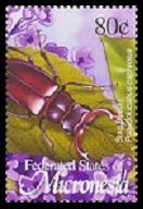 ミクロネシアの昆虫切手ミクロネシアは南太平洋に位置する、日本の奄美大島と同程度の面積の国で、ヤップ、トラック、ポナペ、コスラエの4州で連邦を構成しています。