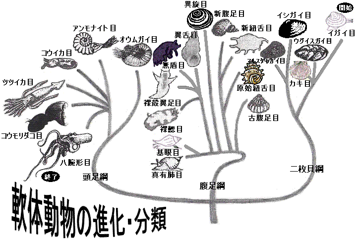 黒色の「軟体動物名」をマウスでクリックすると、軟体動物切手が表示されます。