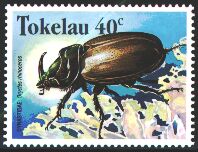 このトケラウ諸島の通常切手として、甲虫を描いたものが1998年に発行されています。