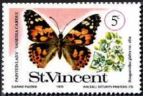 このセントビンセントから1978年に蝶切手5種が発行されました。翌1979年に花と昆虫切手5種が発行されました。