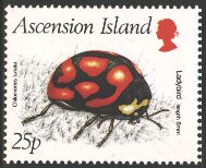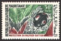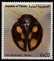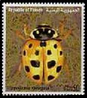 マラウイ発行の切手以外に描かれたテントウムシはすべて益虫で、モーリタニア発行のものはナツメヤシの葉の表面に付着している害虫のカイガラムシを捕食しています。トルコ発行のものも害虫のカイガラムシを捕食しています。