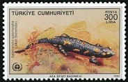 このトルコ共和国から、1990年に「地球環境の日」の切手として両生類を描いた切手4種が発行されました。
