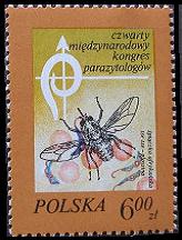 ツェツェバエは、眠り病の病原体であるトリパノゾーマを媒体させ、アフリカ大陸の北緯15度から南緯20度の範囲のうち約1,500km2の範囲にのみ分布します。そのため、この緯度の範囲はツェツェベルト地帯と呼ばれています。口吻は硬化して針状となり、吸血に適した形状となっています。このツェツェバエを描いた切手がアフリカ各国から発行されています。