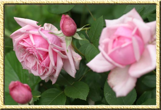 | ラ・フランス。 1867年に作出されたハイブリッドティローズ第1号です。蕾の開き始めは花弁の一部が先に開くので、てるてる坊主のような面白い形になります。 花弁はシルバーがかったピンク色で、裏の方が濃くなります。シルクのような光沢があります。 剣弁なのですが、花弁が多い為、あまり尖った感じにならず、ふっくらとした花姿です。 花持ちはいいほうです。比較的コンパクトにまとまりますので鉢植えにもいいと思います。でもなんといっても香りがとても良いです。 |