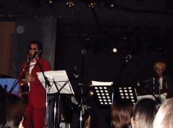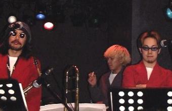 『赤いスパイ』って名前だった)。それにベースが加わって、ドラムが入って金ちゃんのディストーションの入ったサックスへテーマがうつって・・・かっこいー! ライトもブルーになってシャープな感じ。FUZZ JAZZ QUARTET勢揃い!