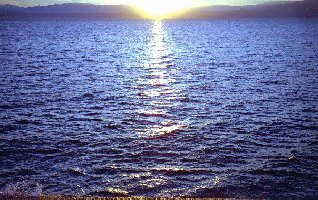 棕櫚の木の梢のほうから赤味がまし、 波の上を、光が足元まで一気に走ってきます