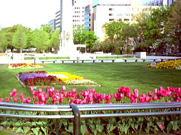 札幌大通り公園では「ライラック祭り」が開催中で、赤・白のライラックだけでなく、チューリップや