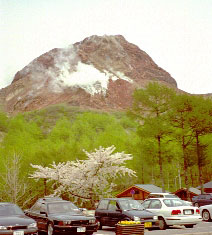駐車場の車と比べると、昭和新山の高さが感じ取れるでしょうか。