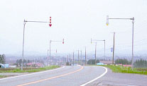 見えなくなったとき路肩の場所を示すためのものだそうです。なお、北海道の交通信号は九州とは