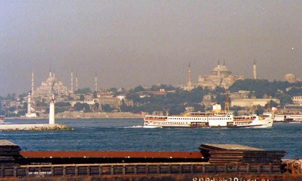 クがたくさんあり、オスマン・トルコの盛時が偲ばれます。またグランド・バザ−ルも見るだけでも結構楽しい。あ、何をさて置いてもトプカプ宮殿、まさに金銀財宝がいつぱいです。(写真3・4はトプカプ宮殿の海峡越しの写真です)物価は大変安く、西瓜やメロンは80円位でした。ドネルケバブ(ナンの間に野菜や肉をはさんだもの)ですませるなら100円位で済むのではないでしょうか。