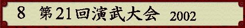平成十四年五月、大阪ドーム・大阪ガス武道場で行われた第二十一回演武大会の写真集です。