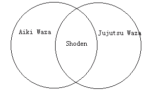 In practice, at first we must learn jujutsu techniques, and later, one step at a time, we learn the jujutsu techniques with aiki. At the same time we learn aiki techniques ( aiki age, aiki nage, etc )from beginners.