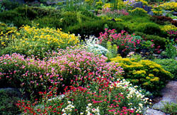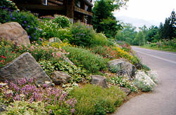 安比高原の別荘地にお住まいの新井さんのお庭は約600坪のロックガーデンに宿根草を中心に植えられています。新井さんはゴルフコースのの設計が本業です。安比高原スキー場の花壇やお庭を手がけたり各地にロックガーデンを作っています。平成13年には岩泉の道の駅の裏手に壮大なロックガーデンを作りました。皆さんもぜひ行ってみてくださいね。