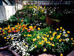 ガラス温室の中には球根類と キッチンガーデンのディスプレイ |