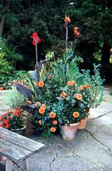 ★カンナとダリアのコンテナ 銅葉の植物を上手に使ったコンテナ 寄せ鉢が素敵ですよね。 |