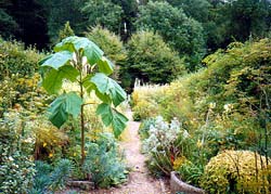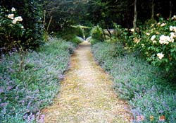 ★キャットミントの小道 両脇にブルーのキャットミント、すぐ隣には キッチンガーデンがあります。 |