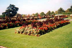 ★1年草の花壇 なんと中心にあるのはチリメンシソ、他のガーデン でも見かけました。 |