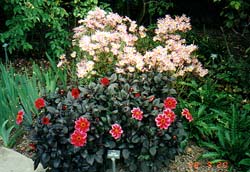 ★銅葉のダリア 今回いろいろなところで銅葉のダリアが目に つきました。このピンクは特にお気に入り。 |