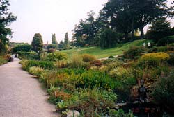 ★水辺の植物のコーナー ずーと向こうまで庭は続いています。 数え切れないしょくぶつが・・・短時間で見るには ポイントを絞るとよいと思います。 |