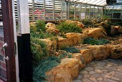 ★アルパインプラントコーナー 高山植物がガラスハウスの中のロックガーデン に展示されています。扇風機がついていて 換気するようになってます。 |