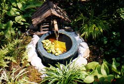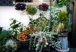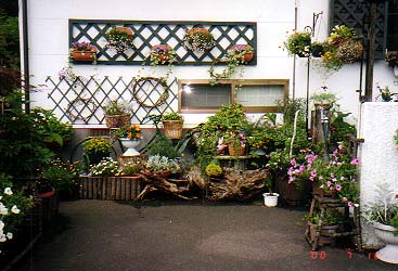 向井さんのお庭は7月16日に会員のかた向けに公開されました。自然に囲まれた静かな環境の中、そこに溶け込むよ様に自然の枝や木などを使った手作りグッズでアレンジした庭です。玄関周りの寄せ植えコンテナもさることながら、裏のプライベートガーデンの可憐な草花がいっぱいです。ご主人の手作りグッズも必見のお庭です。