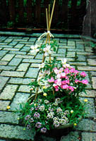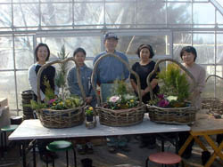 | ★ハンギングバスケットマスターコース★ ガーデナーズクラブの方から希望者を募って、ハンギングバスケットを集中的にマスターし資格に挑戦するコースを設定しました。受験生の方の中には東京のハンギングバスケット展で優秀賞や入賞する方もいて、とてもうれしく思います。 |
