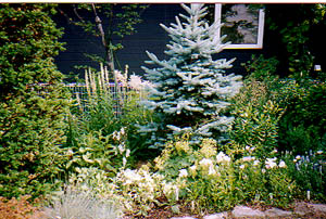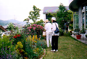 3年前に家を新築なさる際にイングリシュ・ガーデンのような花の庭を作りたいということで相談を受けました。庭のデザインや大きな木などは野田坂先生が施工しました。その木やデザインなどを生かしながらご自分で好きな花を植えてくださいというスペースの基礎になる植栽をお手伝いしました。玉川さんは週末ガーデナー。なるべく手のかからない多年草をベースに植栽を考えました。土つくりから植え込みまでオーナーと一緒にしました。玉川さんは教室にも通って、種を蒔いたりハンギングバスケットを作ったりと週末ガーデニングを楽しんでいます。一番大変だったのは土作りでした。硬いゴロゴロした土を改良するために沢山の堆肥と土壌改良剤をいれて土作りをしました。