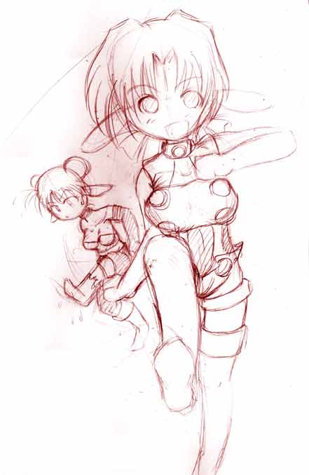 最近、線とかキレイなほうが受けが良いのかなあとか思ったので、フォトショ上でのトレースを入れました。下書きとの比較用にそっちも並べてみたりして。あ・・・背景は自分で描いてませんので(汗