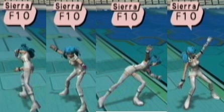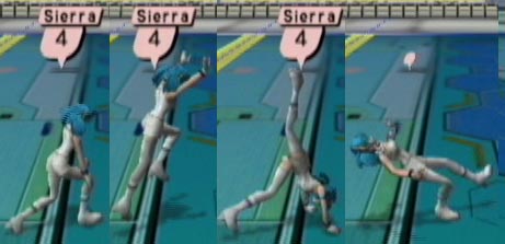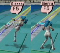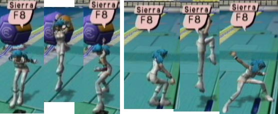 | ・ハイキックですね。 | ・大技、ジャンプ回転ハイキック。 スキが大きいので気を付けて(嘘。 |