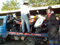 レース関係っぽい写真は、まさに台湾の現地からのものですね。4スト100ccも多数あるようです。メーカーがこういうのを走らせるようなレギュレーションにしているのかもしれませんね〜