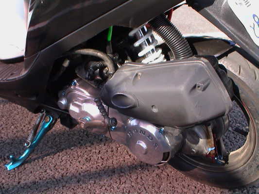 HELLOW hakurin! さてさて、遂に念願叶ってhakurinさんに直接お会いしてお話をお伺いすることが出来ました! 彼のお宅にお邪魔して、早速いろんなものを見せていただきました。 最初からびくりつしました(笑 この写真のスーパーDioはもともと日本で彼の先輩から譲られたものだそうですが、台湾本国で改造を楽しんでいたノウハウやパーツを投入して改造したということです。 実際に乗らせていただいたのですが・・・うっ!これはナカナカ!これでも60ccより少し大きな排気量なんだとか。うむーむ、加速・伸びともにスバラシイ! それほど大きいとは言えない排気量ですが、そのエンジン性能はもっと大きな排気量だと聞いてもじゅうぶんなパワーです。(僕自身がヘボい改造しかできないとも言う)
