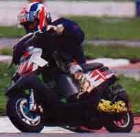こ・・この機種がレーズ全盛なの!? レース特集のページらしき所を見ると、一見日本のミニバイクレースとかわらない風景が。ちょっとだけホッとしましたが、よ〜く見ると・・・アリャ!?AF18なん 何故かはわからないんですが、写真で走っているスクーターの殆どが、日本では10年前に廃版になったはずの「AF18ディオ」!!この機種って、日本じゃレースで使われたっていうハナシを聞かないのに。向こうじゃ現役バリバリなのかなあ。もしかしてワンメイクレースっていう可能性もあるけど、未だに縦型エンヂンが頑張ってるというのがわかっただけでも嬉しいかも(^^)チーム「縦」のみんなにもおしえてあげなきゃ。