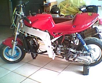 どうやら、だいぶこのマシンの概要がわかってきました。 やはりDIO系のクランクケースを改造しているようで、スペシャルクランクやシリンダーを使ってベースの50ccを100ccオーバーにしてしまう点も同じです。おそらくDIO系エンジンの改造ノウハウがそのまま活かされているようですね。 製作したのは台南のショップなんでしょうか。それとも部品だけのことを指しているのかな?どちらにせよ台湾で製作されたということは間違いなさそうです。 更に衝撃の事実! その後調査を進めたグッピさんからの情報提供によると、更にトンでもないことなっていたのです!