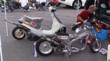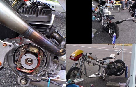 実は専用の外部スターターを製作されて使われているのです。スターティンググリッド手前まで、このようにバッテリーとスターターを随伴しているのですね。なかなか凄そう!