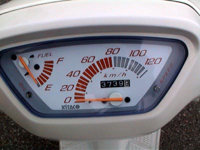 そしてこのマシンには、AF18用のKITAKO120キロメーターが入っていました!(ロゴもしっかり入ってますね)。今は絶版で入手不可能のようですが・・・地方のバイク屋さんの解体部品とかを探せばあるかもしれないとのことでした。