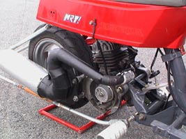 ストックボデーではかなりと思われる車体の低さもさることながら、チャンバーは特製!インナーローターも何かからもってきたという特製になっています!