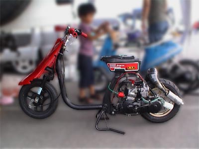 そうそう、こちらは惜しくも詳細全く不明なのですが、とてもキレイに仕上げられていたマシンです!ベースになっているのは・・・どうやらタクティー(右の写真のモデル)のようですが、シックなカラーとまとまりが、もともとのデザインの良さを引き出して、まるでヨーロッパ製のエンスー車のようですね!