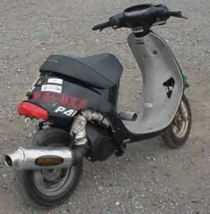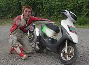 不動明王JOG 前回のインターネットスクーターミーティングで好評だった「不動明王」JOGです。今回はまっくんの要望でEVO2号と一緒に持ち込みましたが、トラブルが出て途中で走れなくなってしまいました。 朝イチで転倒しました(爆 |